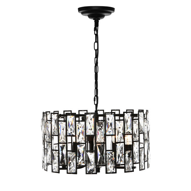 The Porsha 5 or 8 light pendants are sure to make a statement with their black metalware and stunning crystal drops.